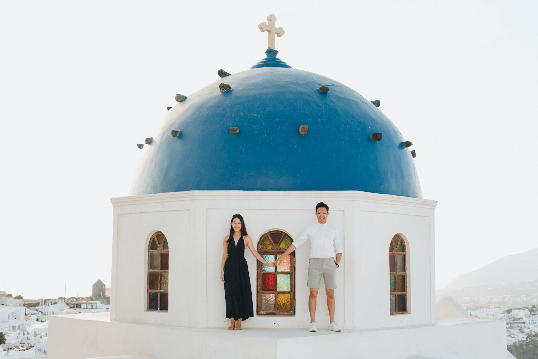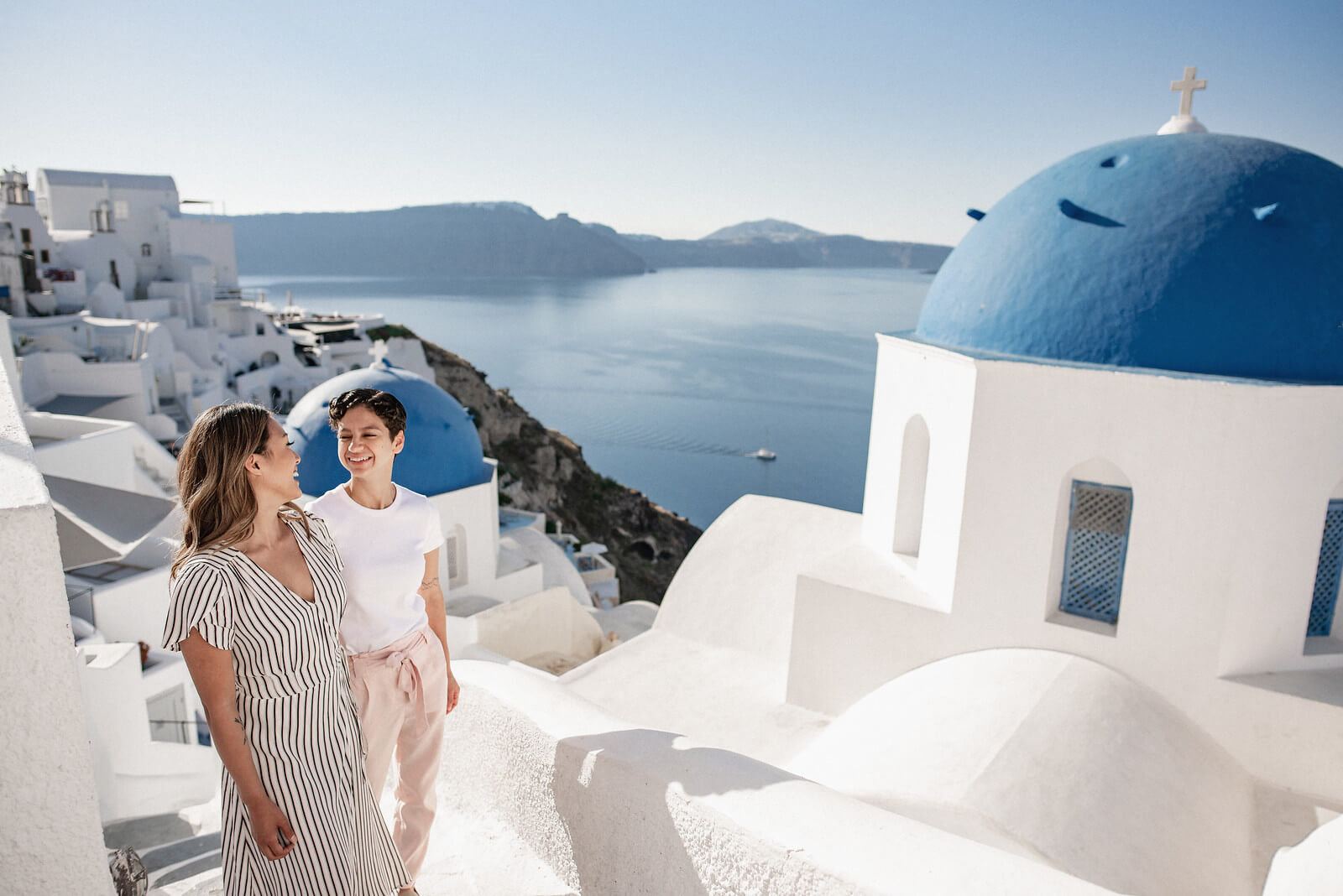 Photo: Kimon in Santorini for Flytographer. Kim and their partner capture memories on a trip to Santorini with a couple photoshoot.